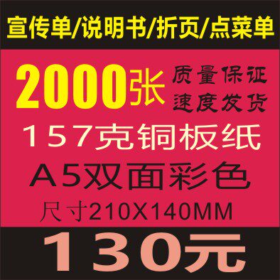 印刷157克铜版纸彩色宣传单.彩页.单张.双面.2千张A5-130元热门设计联盟服务商